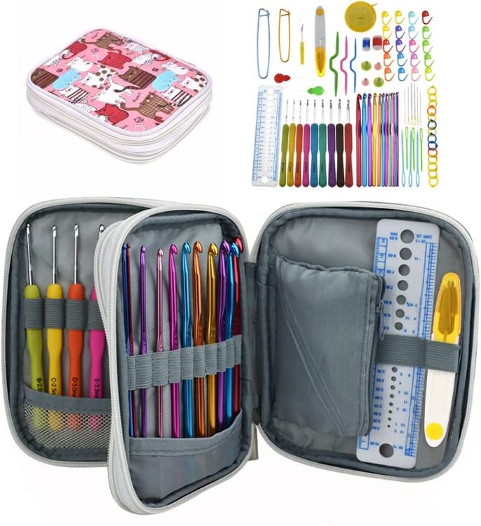 Any person who intends to crochet will eventually discover that whatever project he or she is working on will require taking it on the road to complete. The crochet hooks kit is great for keeping all your hooks and stitch markers together in one place. If you want to get set up with the basic supplies to start crocheting with very little cost, this kit is perfect. Available here, it comes with a selection of hooks, markers, yarn cutters, and knitting tools, making this item a "must-have."