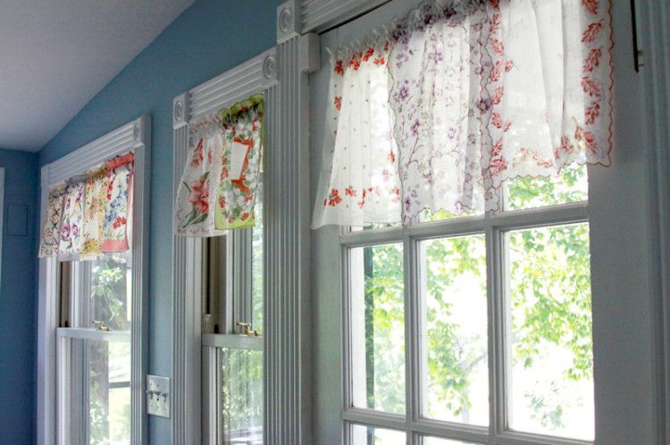 This is one of the most charming window valances we've seen yet! There's almost no better way to display and admire your favorite old handkerchiefs than this. Find out how to create this look here.