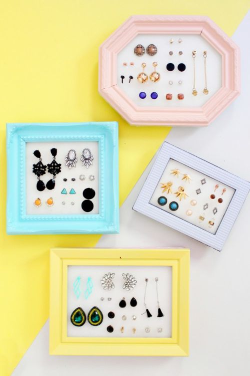 4. Easy picture frame earring holders (h/t A Joyful Riot)
