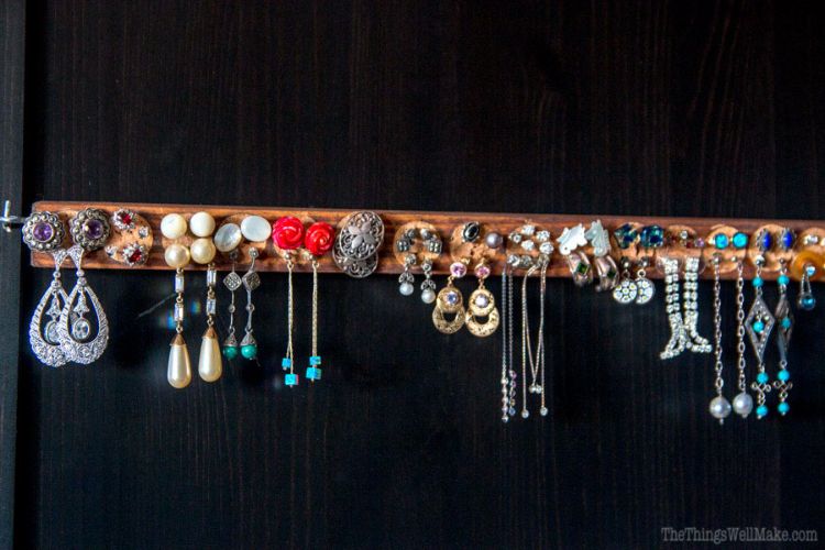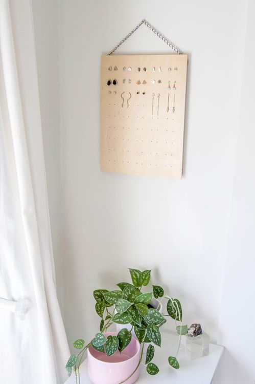 This colorblock wooden earring board is practically a piece of decor in and of itself! You'll need a power drill to make it, but it's an easy woodworking project no matter what your skill level.