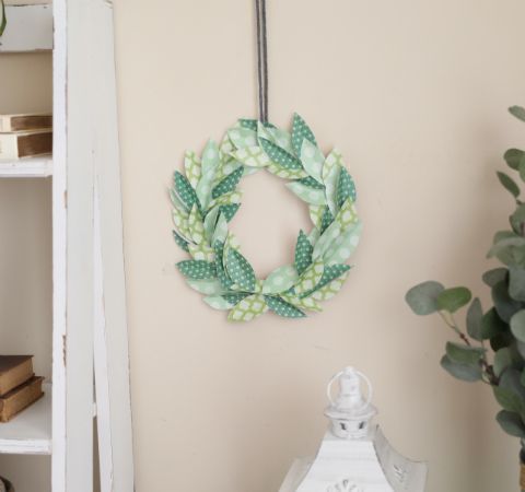 This paper wreath couldn't be any simpler to make, and it's oh so pretty. The green leaves work well for a natural look, but you could have some fun and experiment with more vibrant colors as well.