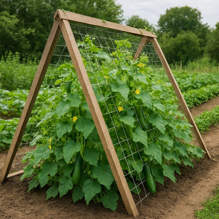 2. Cucumber Trellis: Space-Saving A-Frame Structure