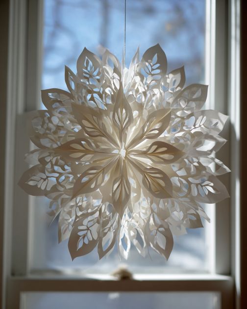 Transform your space into a winter wonderland with beautiful, handcrafted paper bag snowflakes. This delightful DIY project is not only a fun and creative way to spend an afternoon, but it also offers an affordable means to enhance your home's decor during the holiday season. Due to their lightweight and versatile nature, these snowflakes are perfect for adorning windows or walls, bringing an element of whimsy and magic to any room.