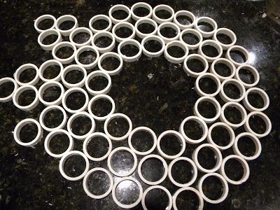 Using a miter saw to cut through a mark placed every 1/2 inch down the pipe, the DIY guide created about 80 circles.