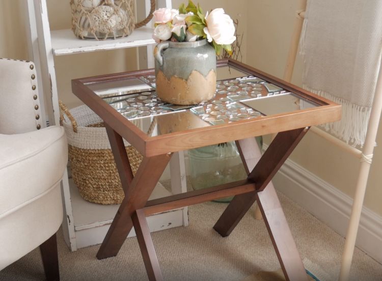 Want to glam up your old coffee table? Why not stick CD pieces on the tabletop to create this design. Just add on a glass overlay over the top so that you have a smooth surface. In the video below, we demonstrate this using broken mirror glass, but a CD would work in the same way. Get the full tutorial here.