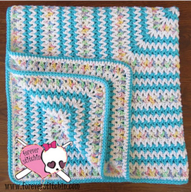The result of mixing colors with this cool stitch is a slightly psychedelic look. Part of the beauty of this square is that you create one fluid piece rather than joining individual squares or circles together. This allows you control to easily grow the blanket to the size you desire.