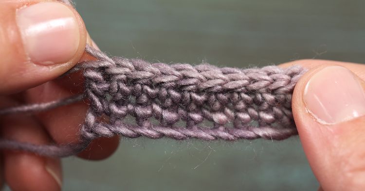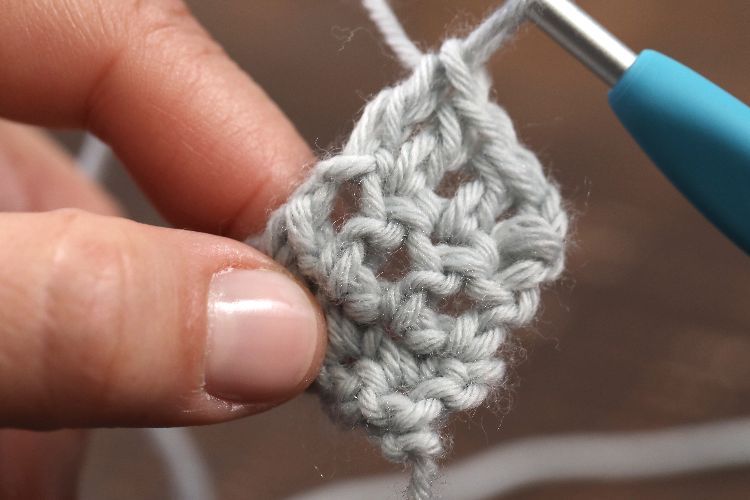 Yarn over, insert the hook in the next stitch, yarn over, pull up a loop, yarn over, and pull yarn through all three loops on hook. One half double stitch made. To begin a half double crochet row, chain 2. Get the full tutorial here.