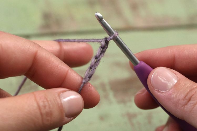 Yarn over, pull yarn through loop on the hook. One chain stitch made.
