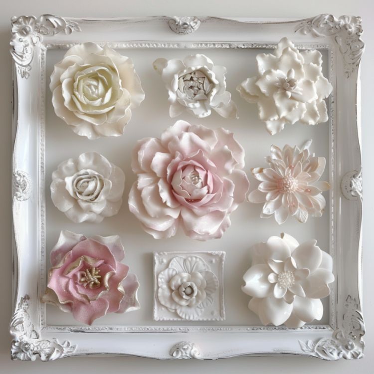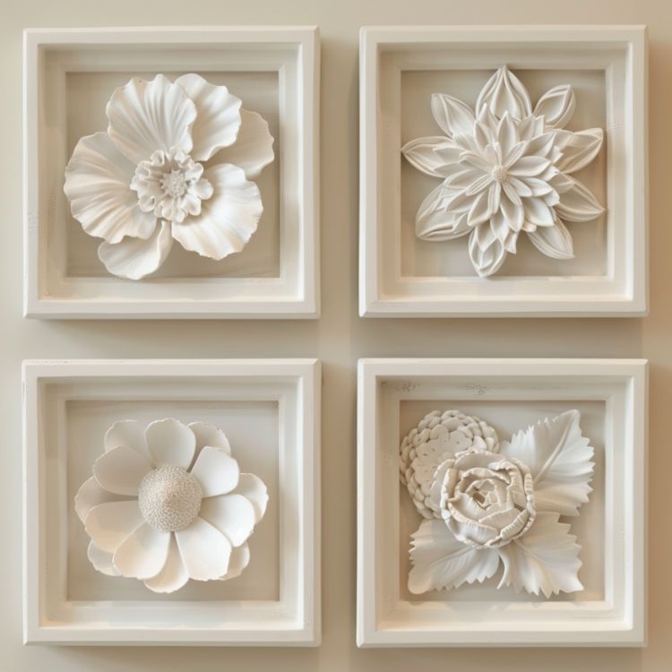 Try a more traditional project for your plaster flowers. Choose a frame that's the same color as the plaster (white if you don't add tint), add plastered flowers, and hang it on your wall. Use different flowers in each frame for a modern design pop.