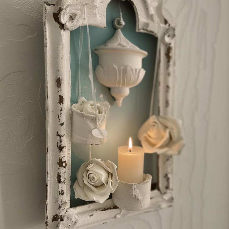This is a fun twist on the plaster-of-Paris flower trend. Once the flowers have hardened completely, attach the flowers and a small candle to a painted board for a pretty wall decoration.
