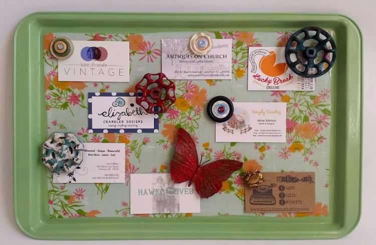 Depending on what your tray is made of, you can use magnets or tape to post reminders and notes to this memo board. If you want to give the tray a personalized look, you can wrap it in fabric or decorative paper to match the theme of the room.