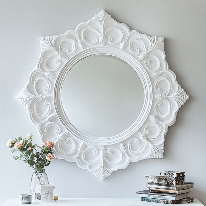For a mirror with a little more pop, follow this tutorial from Average Inspired to create your very own standalone ceiling medallion mirror in the color of your choosing. This would look great in a small bathroom.