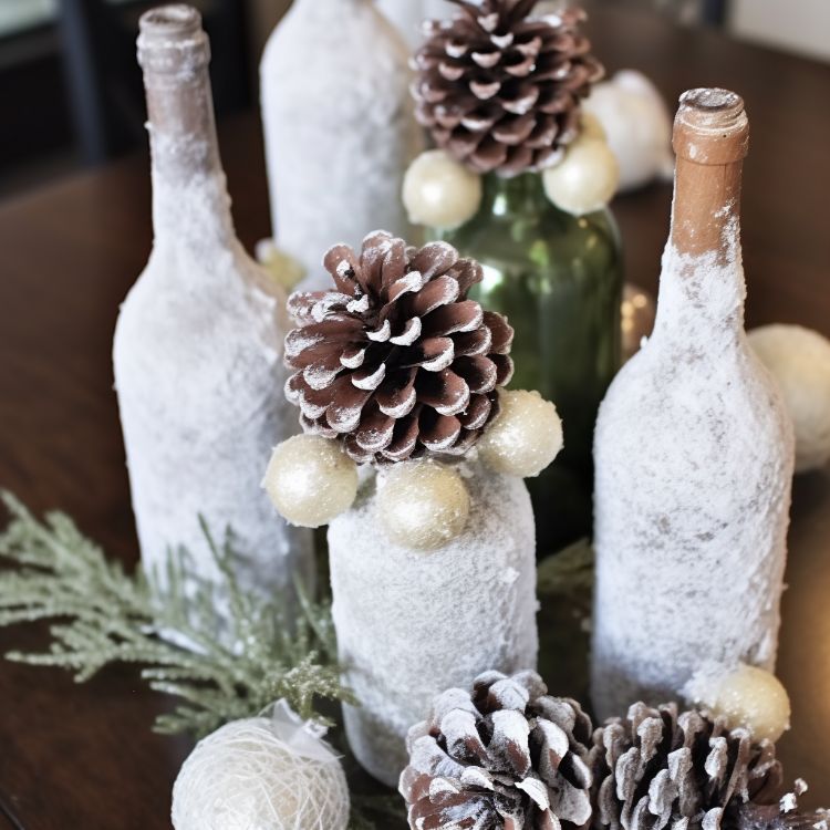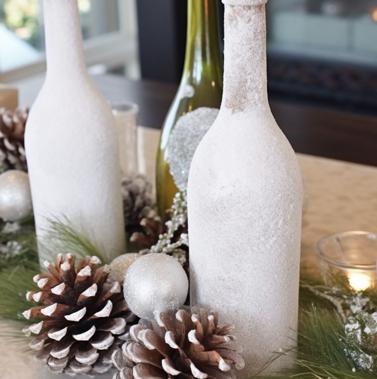 You can add a pop of color with a few flowers in the bottle, or decorate with snowy pine cones or other ornaments.