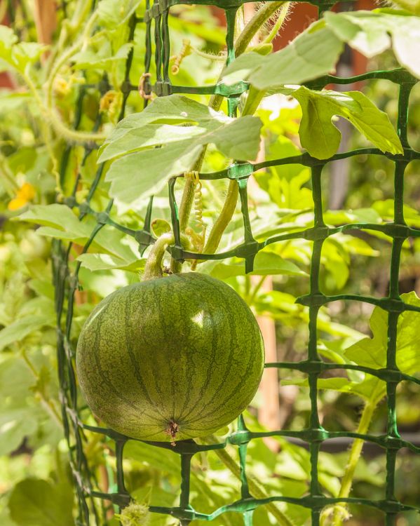 Watermelon plants need a lot of space to grow. If you give them a trellis to climb, and train the plants to do so, you can control their footprint. Making them grow upward will keep them from taking over your yard or balcony.