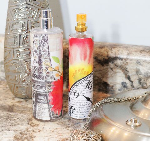 Because of the unique shapes of perfume bottles and tops, they are beautiful just by themselves. If you want to add a little bit of extra glamour to your bottles, you can decorate them with images, stickers, and jewels. Get the full tutorial here.