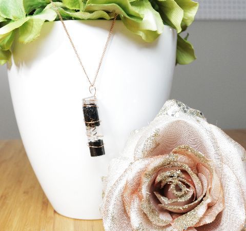 If you've ever received a bunch of sample perfume bottles, you can also reuse those. Simply add a chain and some jewels, and you will have a gorgeous necklace to wear to your next dinner party. Get the full tutorial here.