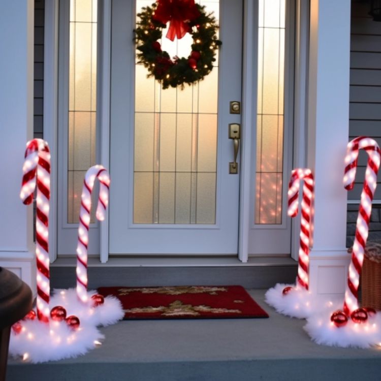 Christmas isn't complete with lighted up candy canes. This idea can be created using string lights and old PVC pipes. Paint up those pipes red and white, and don't forget to add ribbon!