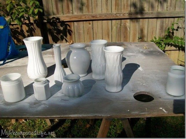 Give boring glass vases and jars a makeover with spray paint. Thrifting for glass is fun, and you may come across some cool vintage pieces with unique shapes or designs that make them stand out. Customize them further with spray paint. Get the full tutorial at My Repurposed Life.