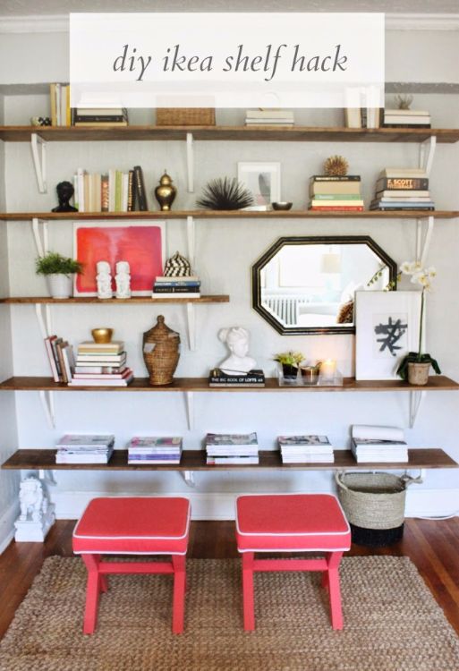 This wall of shelving looks expensive, but you won't believe how easy it is to make. The best thing about the project is that you can design it to perfectly fit your space — and even leave room for a mirror or your favorite painting.
