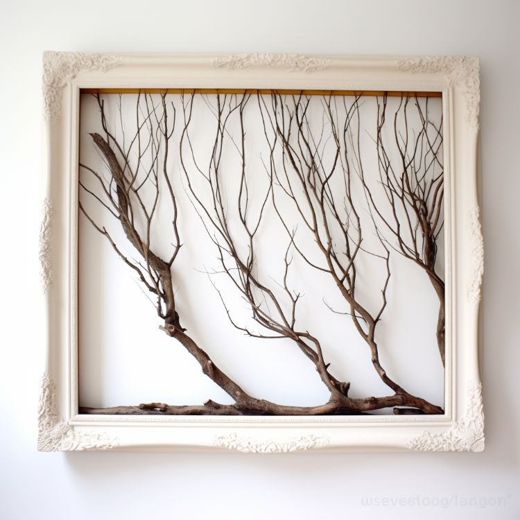 If you have an attractive picture frame that you don't use, why not turn it into a creative piece of twig art like this one? This would look splendid hanging on the wall in the living room.
