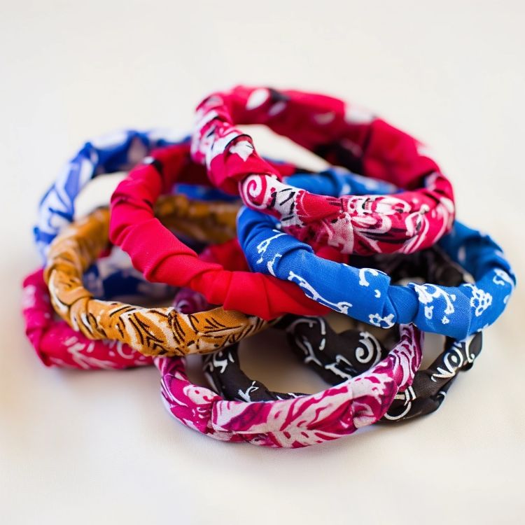 If you're looking for a new way to wear bandanas, try turning one into a bracelet! There are plenty of different ways you can do this, but one of the easiest is simply using a strip of bandana to cover an old bracelet cuff or a simple bracelet form from the craft store.