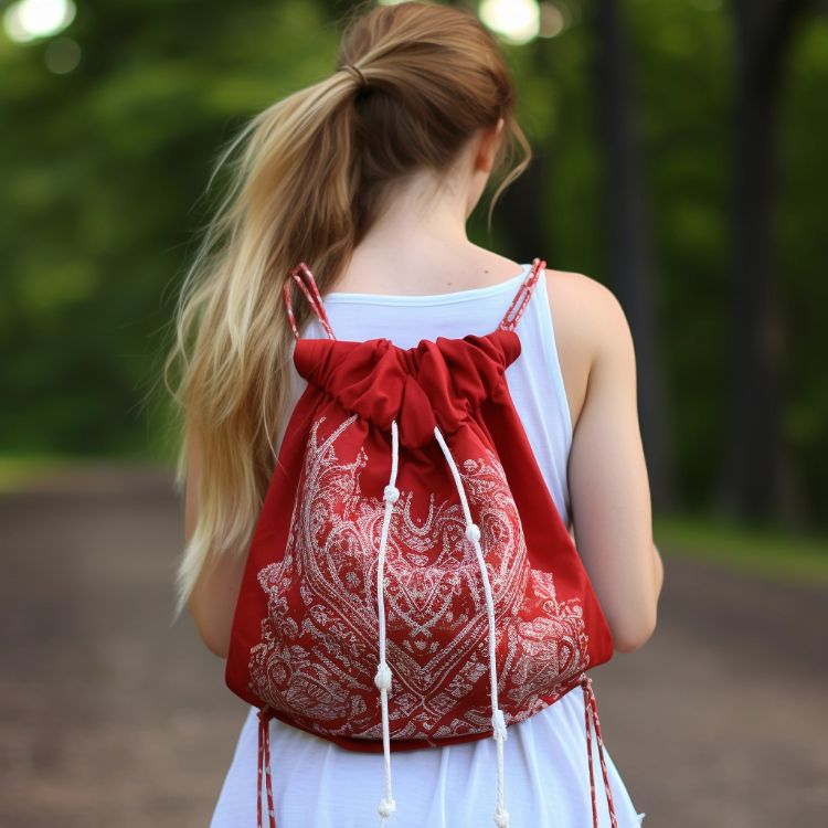 As far as making a backpack goes, this is probably the easiest way and if you're handy with a sewing machine, this will be a cinch for you. Grommets are used to make this drawstring backpack and of course, a bandana. Pick out a matching liner fabric and some string and you're on your way.