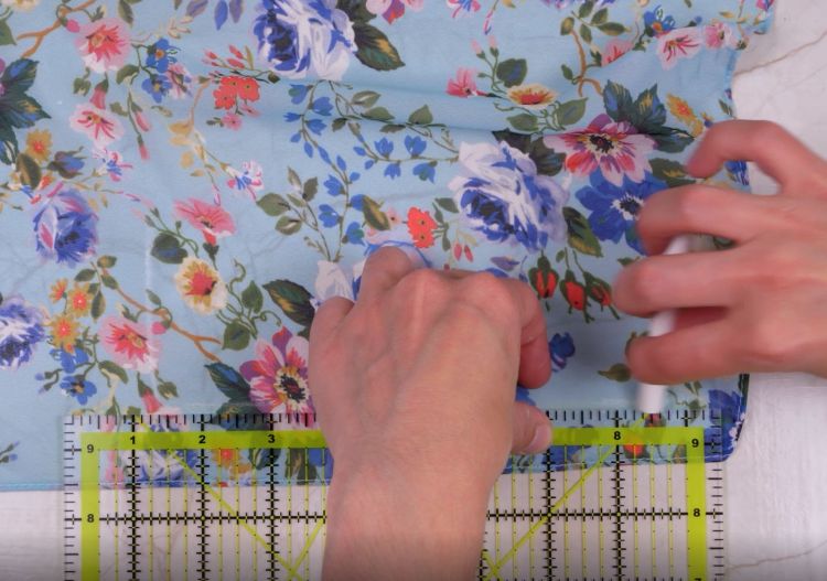 Use a quilting ruler to connect the dots with straight lines and cut out this piece of fabric.