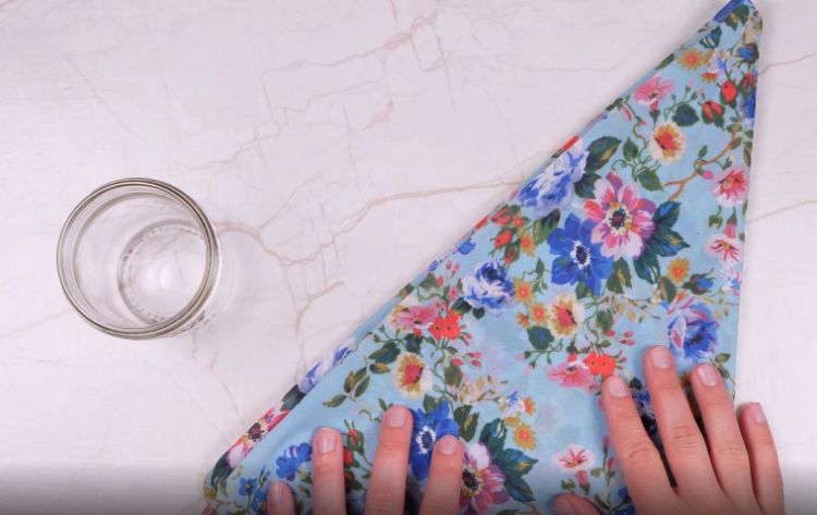 2. Place the mason jar on the unfolded bandana and make chalk dots to mark its height and width.