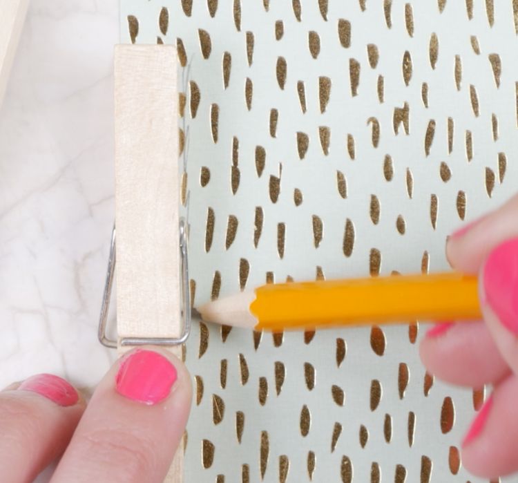 4. Place a clothespin onto one type of decorative paper, then trace around it using a pencil.