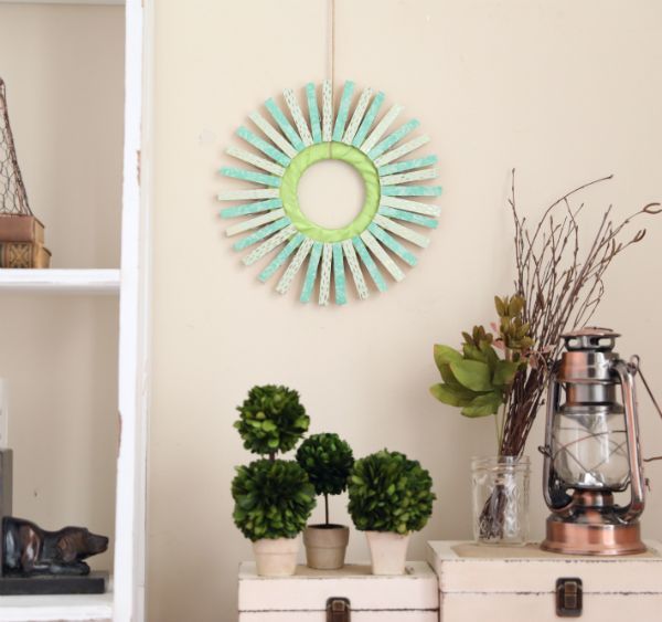 Who says wreaths have to be made of greenery? In this DIY, clothespins are used to create a wreath that is out of this world. With bright colors and retro-inspired design, this piece is an easy way to add a cheerful look to any room.