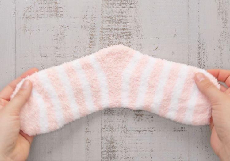 1. Place the sock flat on its side. Place your finger on the sock's heel.