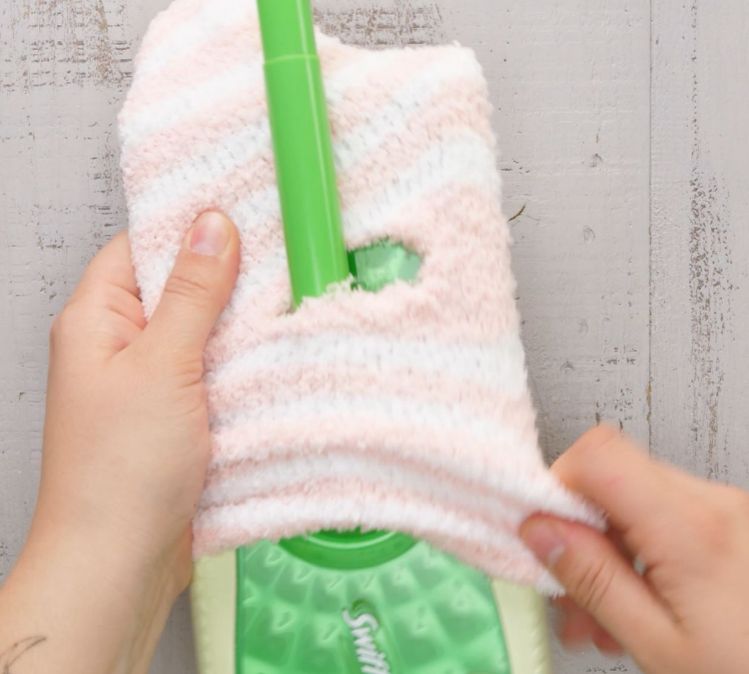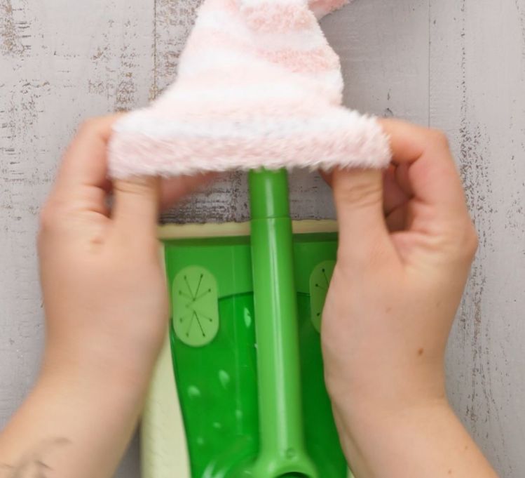 Fuzzy socks or other socks with texture, such as those with raised knitted patterns, are best to use with this project. The sock also should have enough elasticity to stretch around the mop head. If it doesn't, try a larger sock.