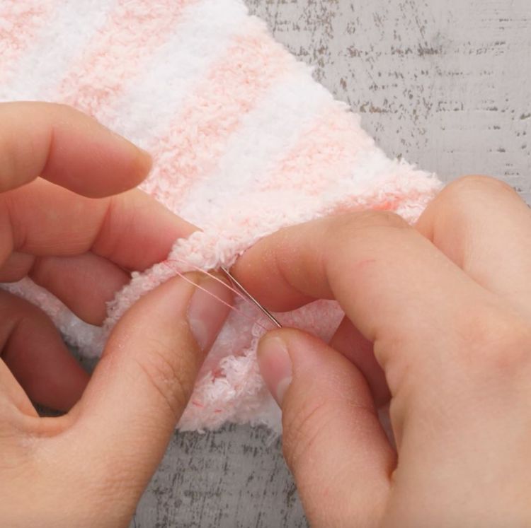 4. Sew around the cut opening using a blanket stitch to keep the sock from fraying.