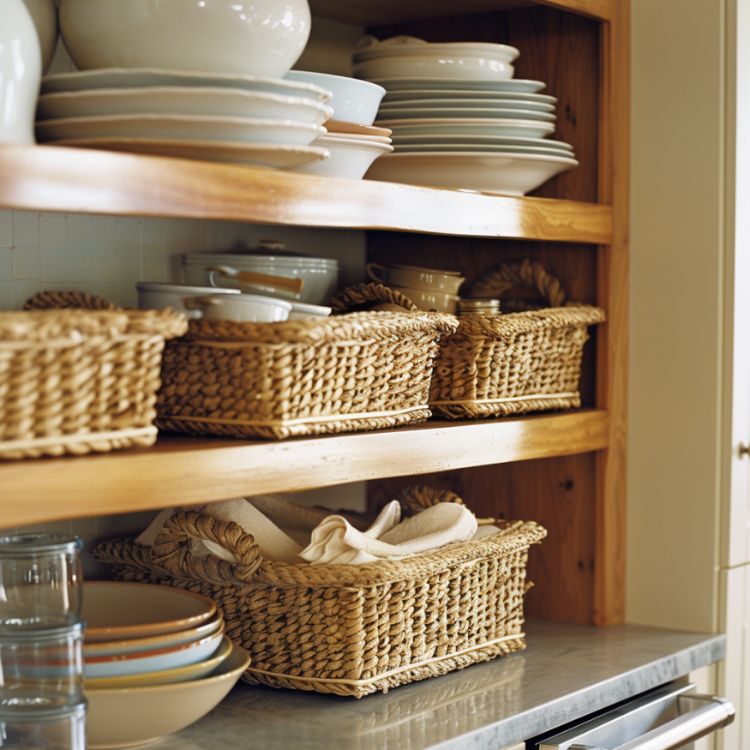 Cabinets tend to have unused space between shelves. By adding under-shelf baskets, you can maximize this vertical area. These are ideal for storing smaller items like kitchen towels, napkins, or even your spice collection.
