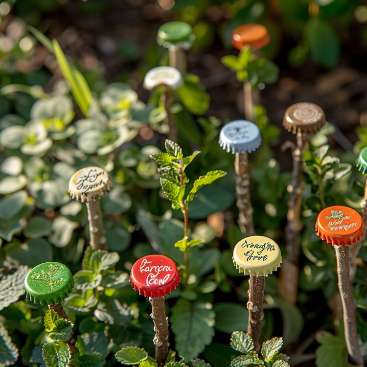 Write the names of plants on the tops of caps and place them on sticks to use as labels in your garden. This is not only practical but also adds a pop of color among the greenery.