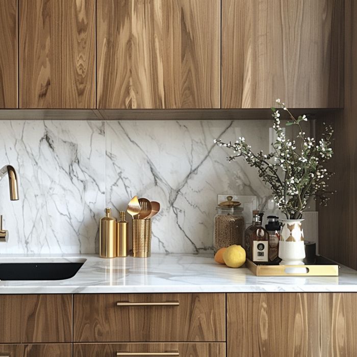 For an instant makeover, consider using adhesive vinyl coverings. Available in various patterns and finishes, these can mimic anything from wood to marble, giving your old cabinets a completely new look.