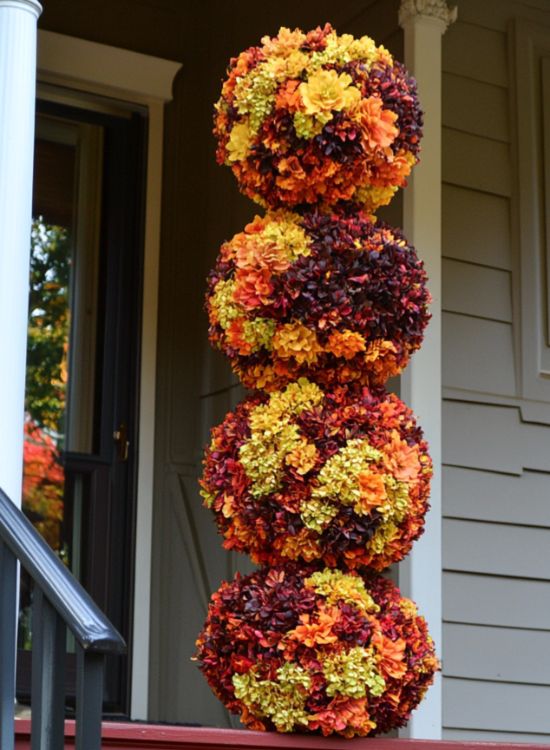 For a different twist, try using flowers in a single color scheme or theme—like all burnt oranges and maroons for a more cohesive look, or a mix of deep purples and whites for an unexpected fall palette. You can also mix in some faux berries or miniature pumpkins for added texture and interest. If you prefer natural elements, consider using real dried flowers or leaves alongside the artificial ones. Additionally, the styrofoam balls can be customized with a bit of paint or glitter to add an extra touch of uniqueness. Don’t be afraid to experiment with different sizes of styrofoam balls and flowers for a more dynamic and varied display.