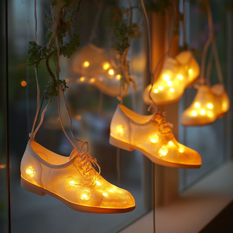 Transform old shoes into one-of-a-kind lighting fixtures. Drill holes in the shoes and insert LED lights or fairy lights inside. Hang them from the ceiling or place them on a shelf to create ambient lighting. This innovative use of old shoes adds a whimsical touch to any room and highlights your creative flair.
