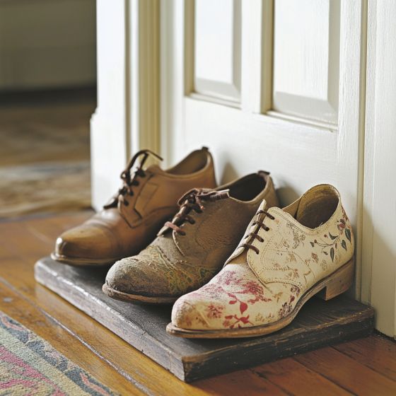 Old shoes can be transformed into practical doorstops with a bit of creativity. Fill them with sand or small stones to give them the necessary weight, and place them at the base of your doors. You can personalize them with paint, fabric, or other decorative elements to match your interior design. This simple project is both functional and a great way to showcase your personal style.