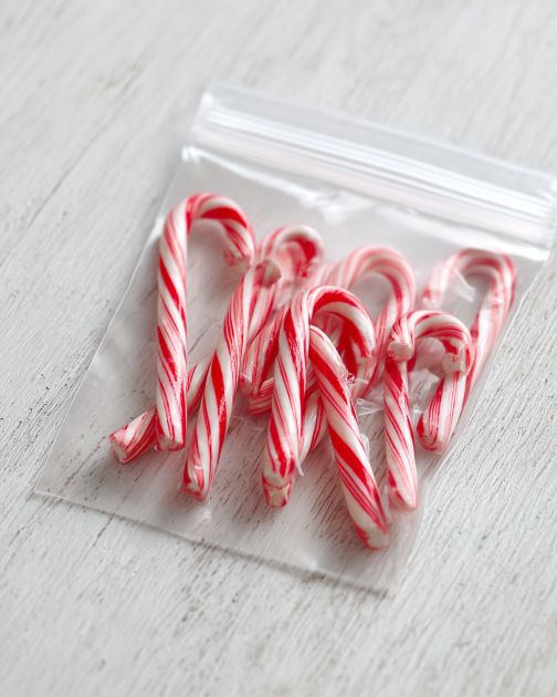 Place the candy canes inside a zipper bag, ensuring they are spaced out evenly.