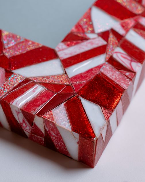 These candy cane mosaic frames are perfect for adding a pop of holiday cheer to any room. Place them on a mantel, hang them on the wall as part of a festive gallery, or use them to frame holiday photos. The vibrant reds and whites of the candy canes will complement neutral or monochrome settings beautifully, adding a playful yet elegant touch to your interior. For a cohesive look, pair them with other peppermint-themed decor or silver and gold accents.