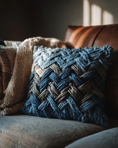 This DIY crochet throw pillow can be a striking accent piece in a variety of interior styles. In a minimalist setting, it acts as a bold focal point with its textured surface. For bohemian or eclectic spaces, it adds a layer of visual interest and can be mixed with other patterned pillows and throws. Consider placing it on a neutral-colored sofa or chair to allow its unique texture to stand out. Pair it with metallic or wooden elements for a balanced aesthetic that combines natural and industrial vibes.