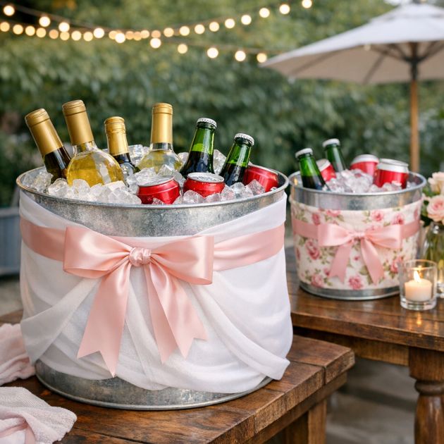 For an added touch of elegance, consider wrapping the exterior with decorative fabric or ribbons that match your party theme. A large bucket can hold multiple bottles and cans, while smaller buckets can be used for individual tables, ensuring guests always have a refreshing drink within reach.