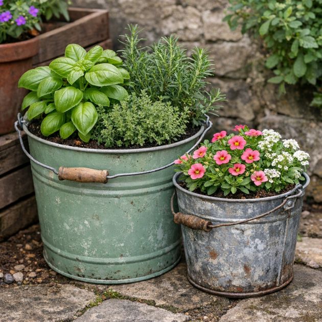 Old metal buckets make excellent rustic planters, perfect for adding a vintage touch to any garden space. With their durable construction, they can withstand the elements, making them ideal for outdoor use. To transform a bucket into a planter, simply drill a few drainage holes in the bottom to ensure proper water flow. Fill the bucket with a quality potting mix and plant your favorite flowers, herbs, or small shrubs.