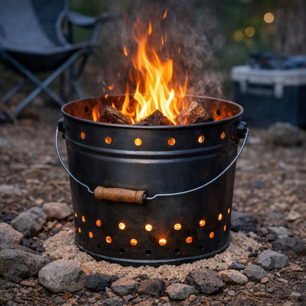 Fill the bottom with a layer of sand or gravel, which will protect the metal and help with heat distribution. These portable fire pits are perfect for camping trips, beach outings, or even backyard gatherings. A large 15-gallon bucket can provide a decent-sized fire that is both warm and atmospheric, while smaller buckets are great for personal use or small group settings.