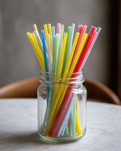 In a well-ventilated area, spray paint the entire surface of the jar and straws. Apply multiple light coats for even coverage, allowing drying time between each coat.