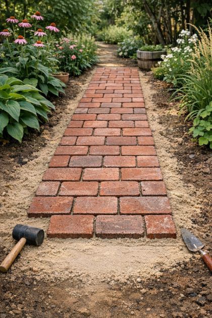 DIY Garden Walkway with Red Clay Bricks