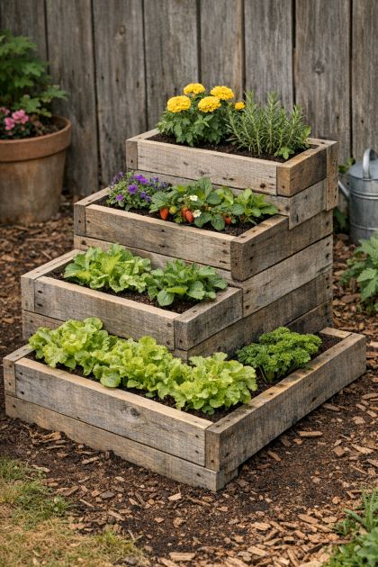 Tiered Garden Planter from Weathered Pallet Wood