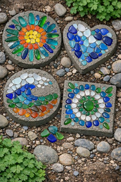 DIY Decorative Sea Glass Stepping Stones