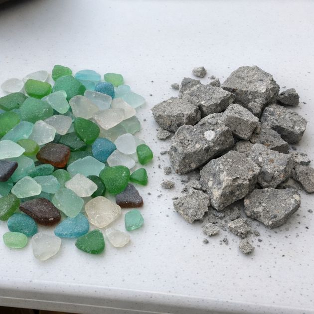 Use a damp sponge or cloth to wipe away any excess concrete film from the sea glass, revealing their full color and shine.